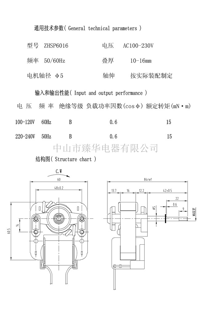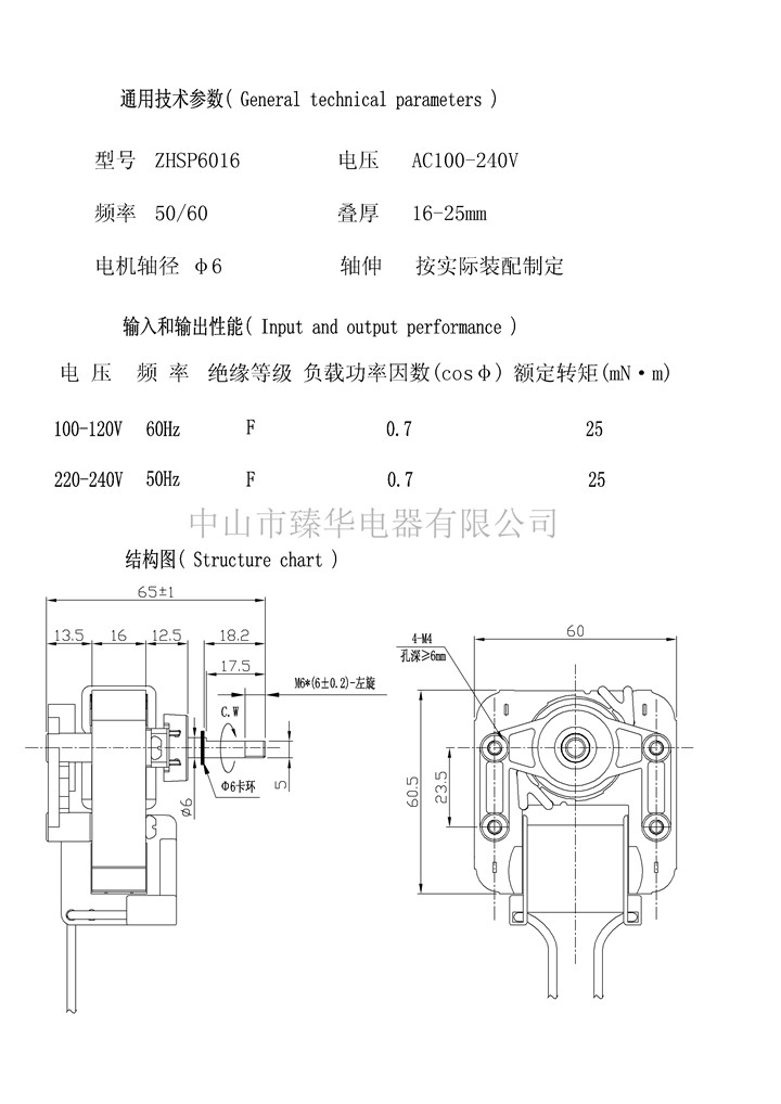 罩极电机 ZHSP6016